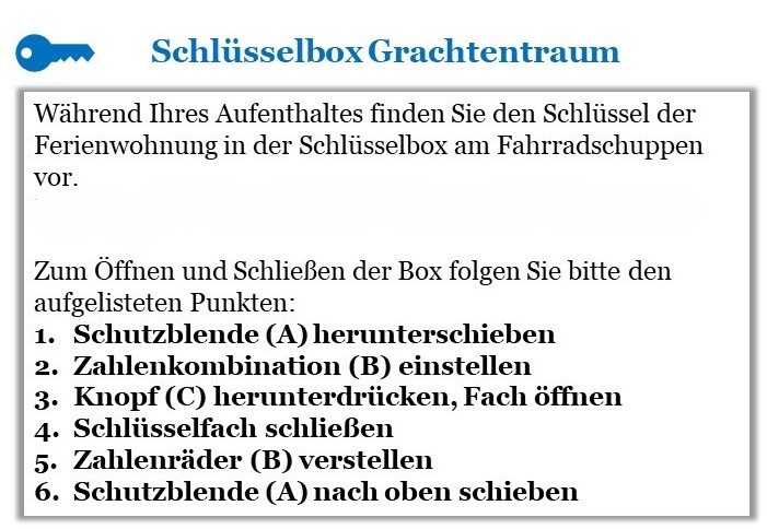 Die Schlüssel legen Sie bei Abreise bitte auf den Esszimmertisch.